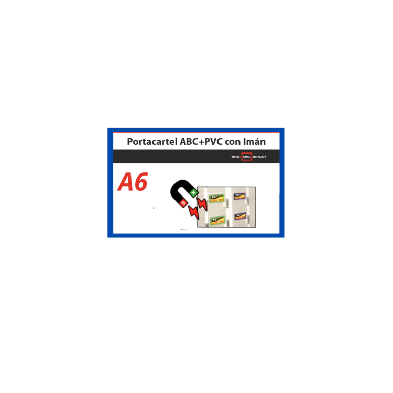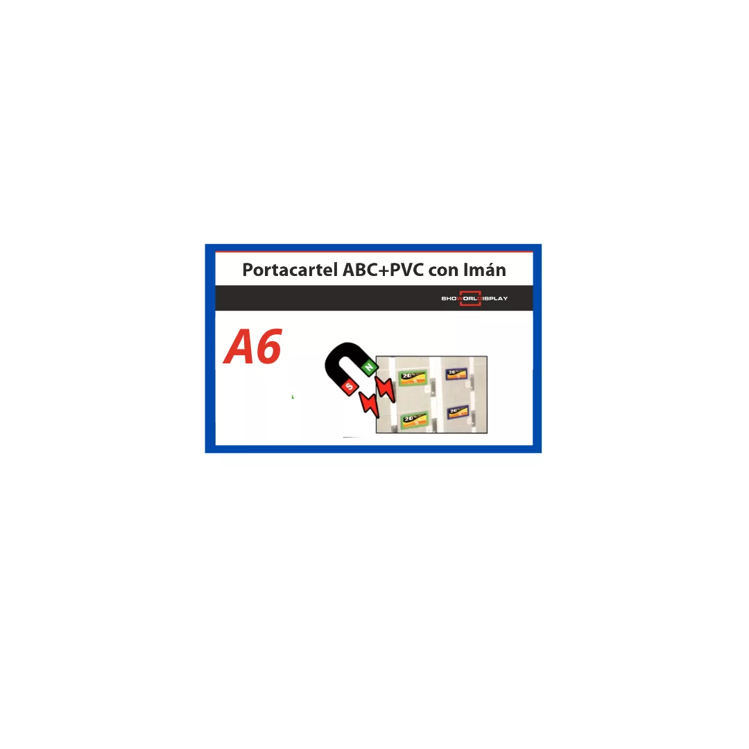 Portacartel ABC+PCV para poner en pared, cristal, mobiliario en interior. Tamaño  din A6. Color Azul.