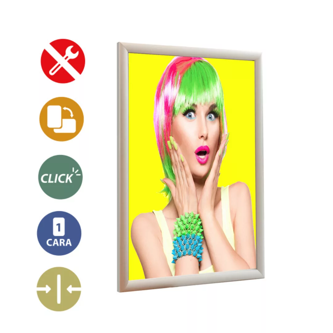 Portacartel con apertura frontal para fácil cambio de imagen. Tamaño imagen A1. Marco color gris brillo.