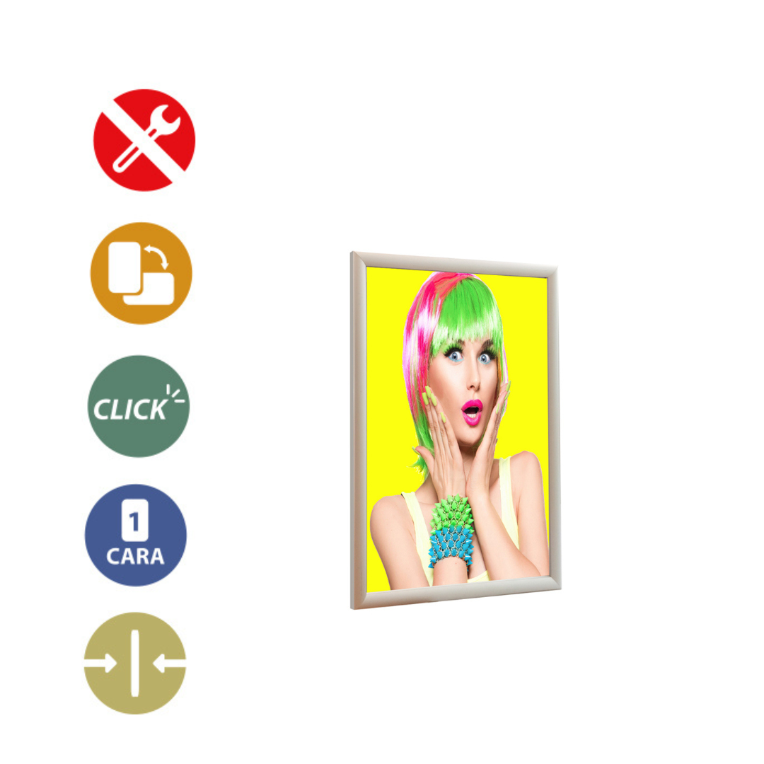 Portacartel con apertura frontal para facil cambio de imagen. Tamaño imagen A3. Marco color gris brillo.
