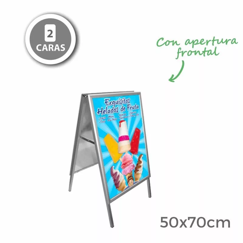 Caballete portacartel de doble cara robusto, estable y elegante. Perfecto para anunciarse en la acera de forma económica.