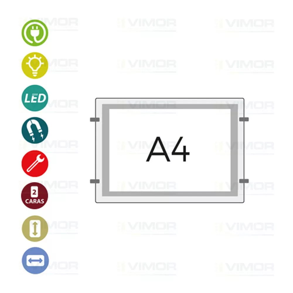 Portacartel magnético doble led “sist.cable” A4 horizontal 12v-6,7w