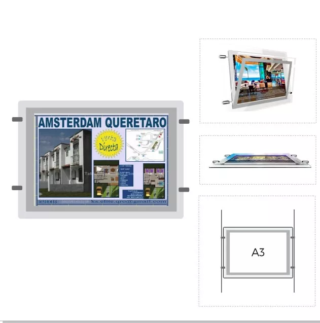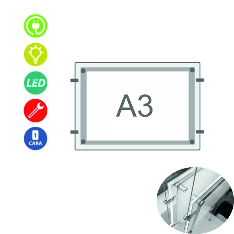 Portacartel led “eco” A3 horizontal con 4 sujeciones