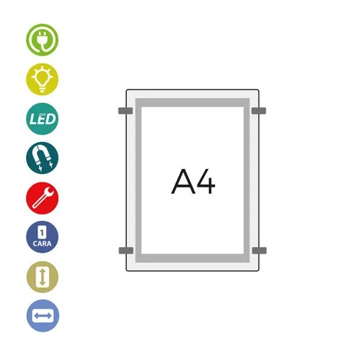 Portacartel led magnético “sist.cable” A4 vertical 12v-6,7w