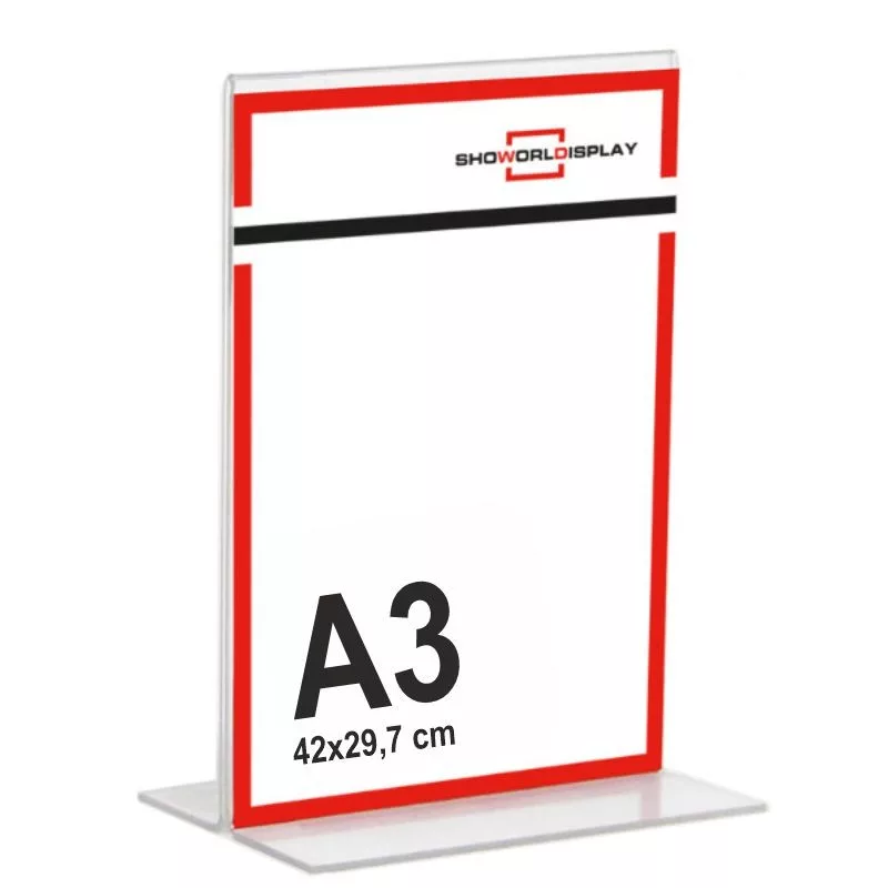 Portacartel metacrilato vertical base T A3