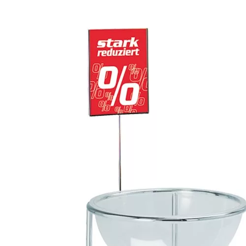 Portacartel p/cesta perfumeria din a4 vertical cromado