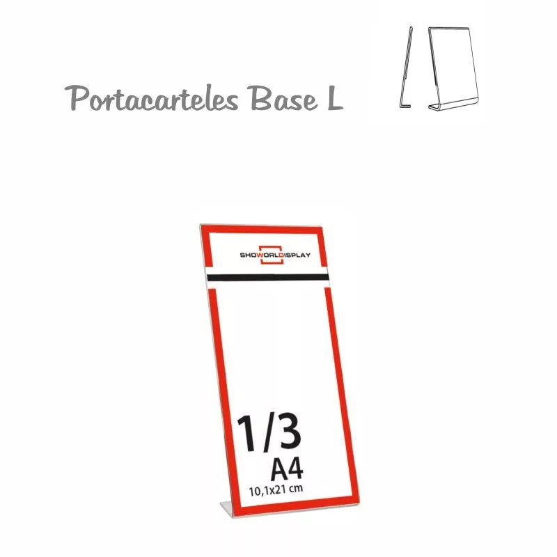 Portacarteles metacrilato vertical base L 1/3-A4 (En caja de 12uds)
