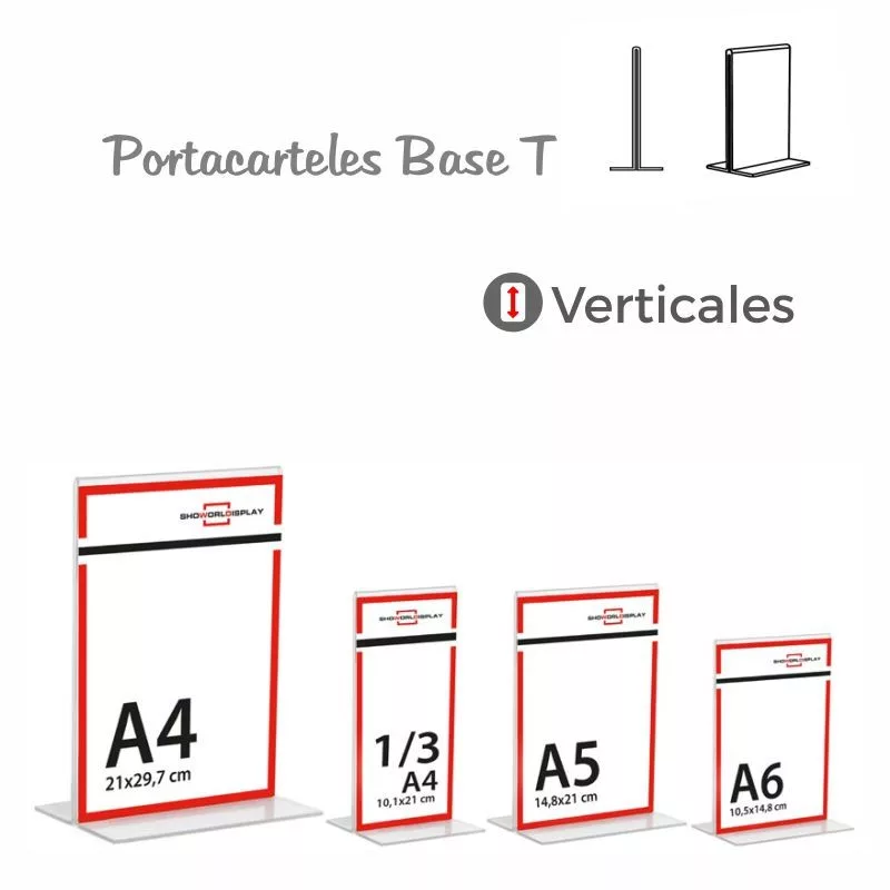 Portacarteles metacrilato vertical base T A4 (En caja de 12uds)