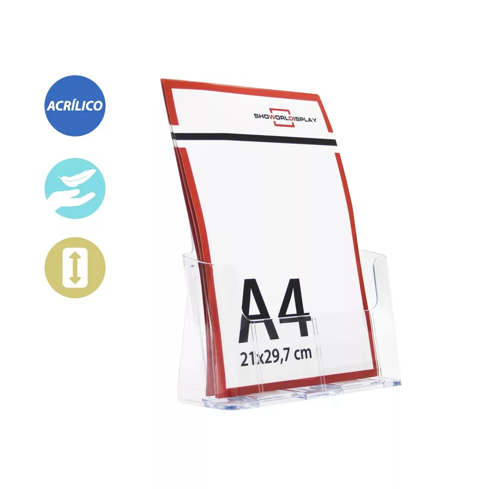 Expositores para folletos en material acrílico transparente para tamaño A4