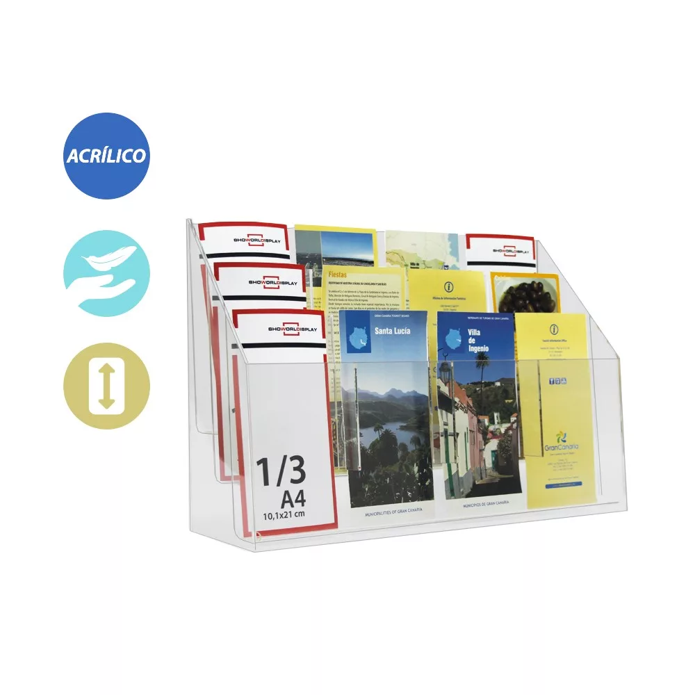 Expositores para folletos en material acrílico transparente para tamaño 1/3 A4  de  4 líneas  y  3 filas