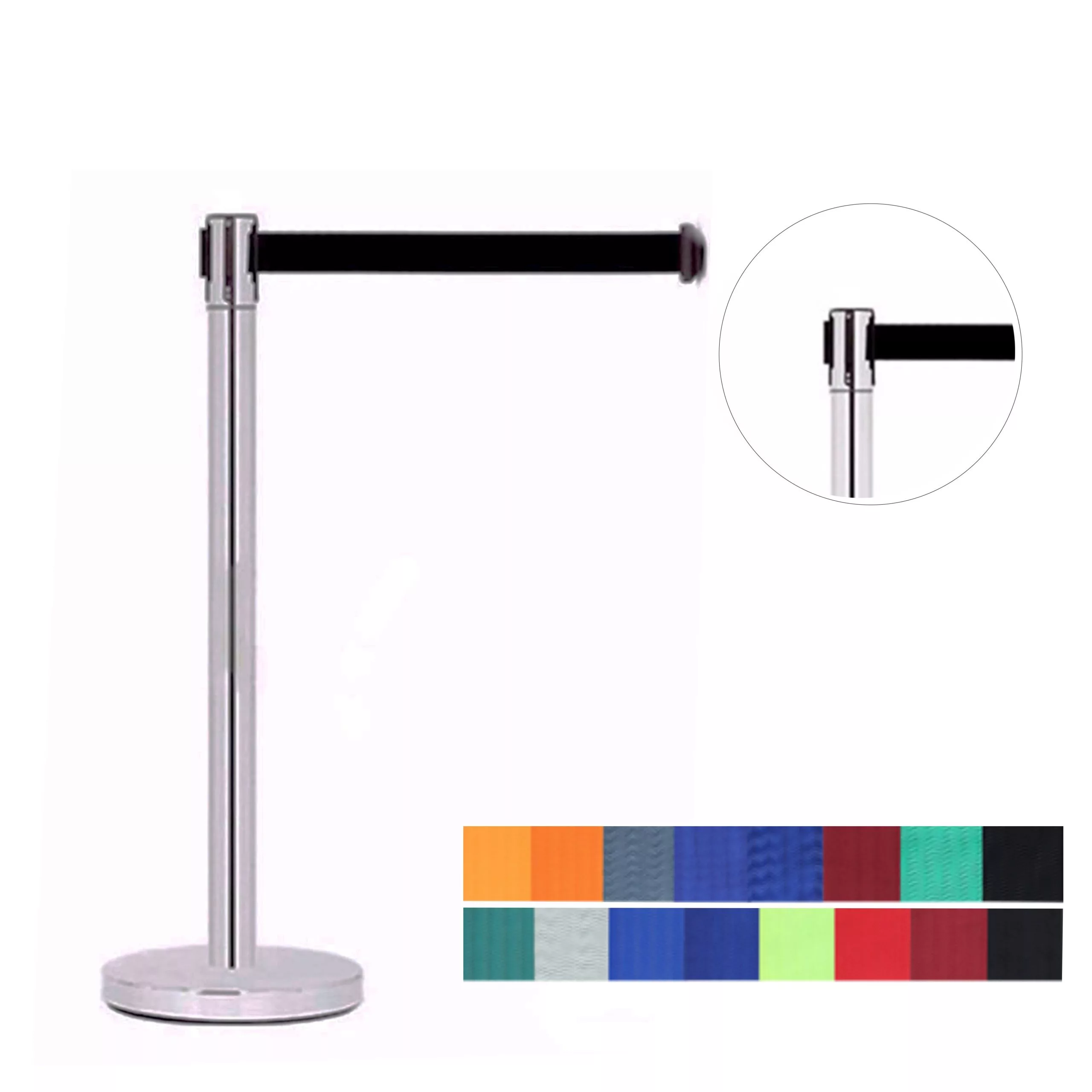 Poste separador cromado con cinta retráctil