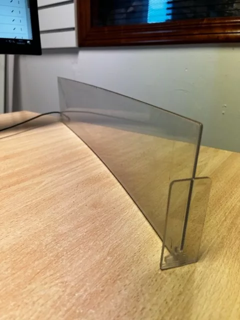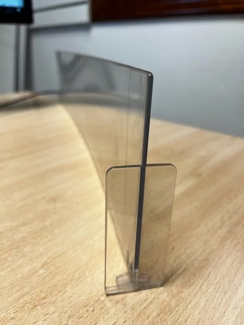 Separador central de plástico con parada frontal de 3.5cm de ancho + 8cm de alto para estantes. Color transparente.