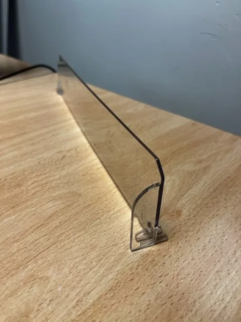 Separador derecho de plástico con parada frontal de 1.7cm para estantes. Color transparente.