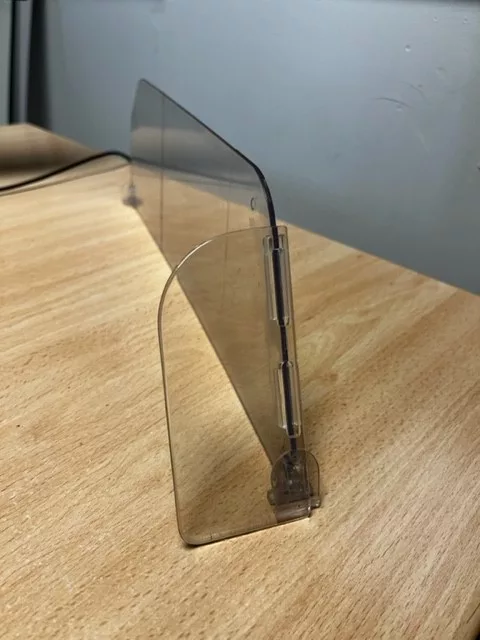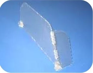 Separador izquierdo inclinado 30º de plástico con parada frontal de 5 cm de ancho x 12xm de alto para estantes. Color transparente.