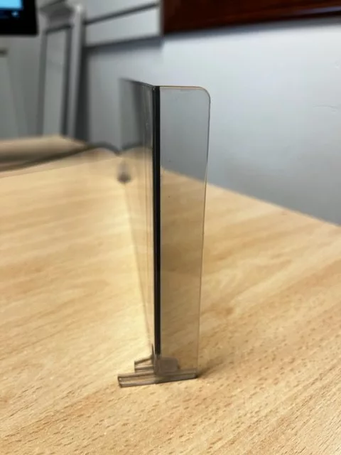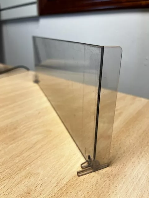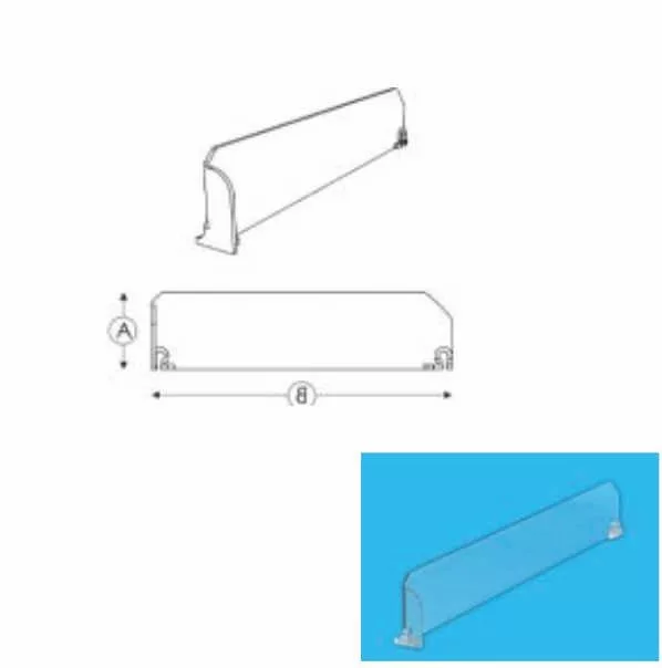 Separador izquierdo de plástico con parada frontal de 1.7cm para estantes. Color transparente.