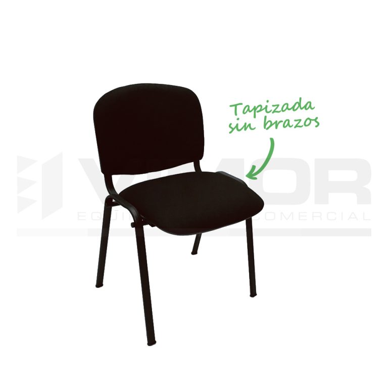 Silla de confidente de tela, fija, sin brazos. Apilable. Color negro