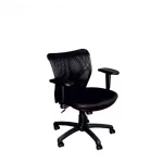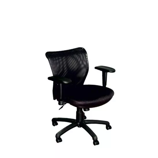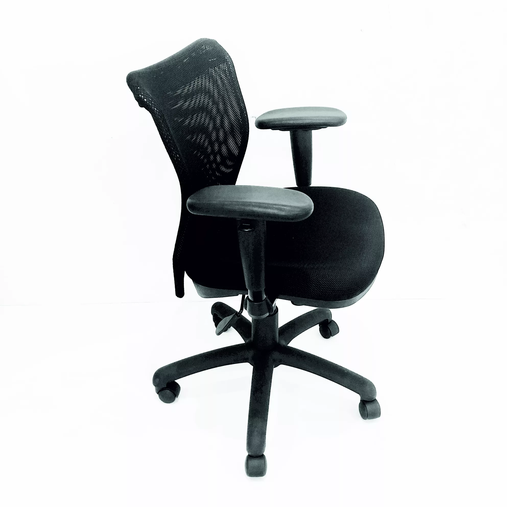 Silla oficina con ruedas y brazos. Respaldo de redecilla. Color negro