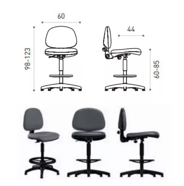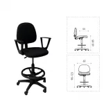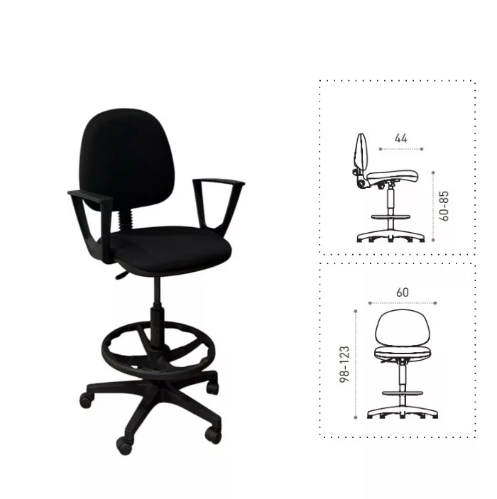 Silla para mostrador de tela con ruedas y brazos.  Color negro
