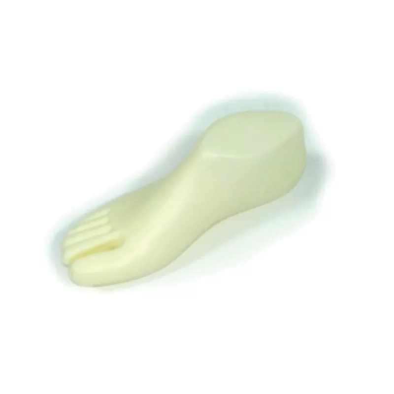 Soporte forma pie para exhibir una sandalia, calcetín, para ortopedia. Material plástico.