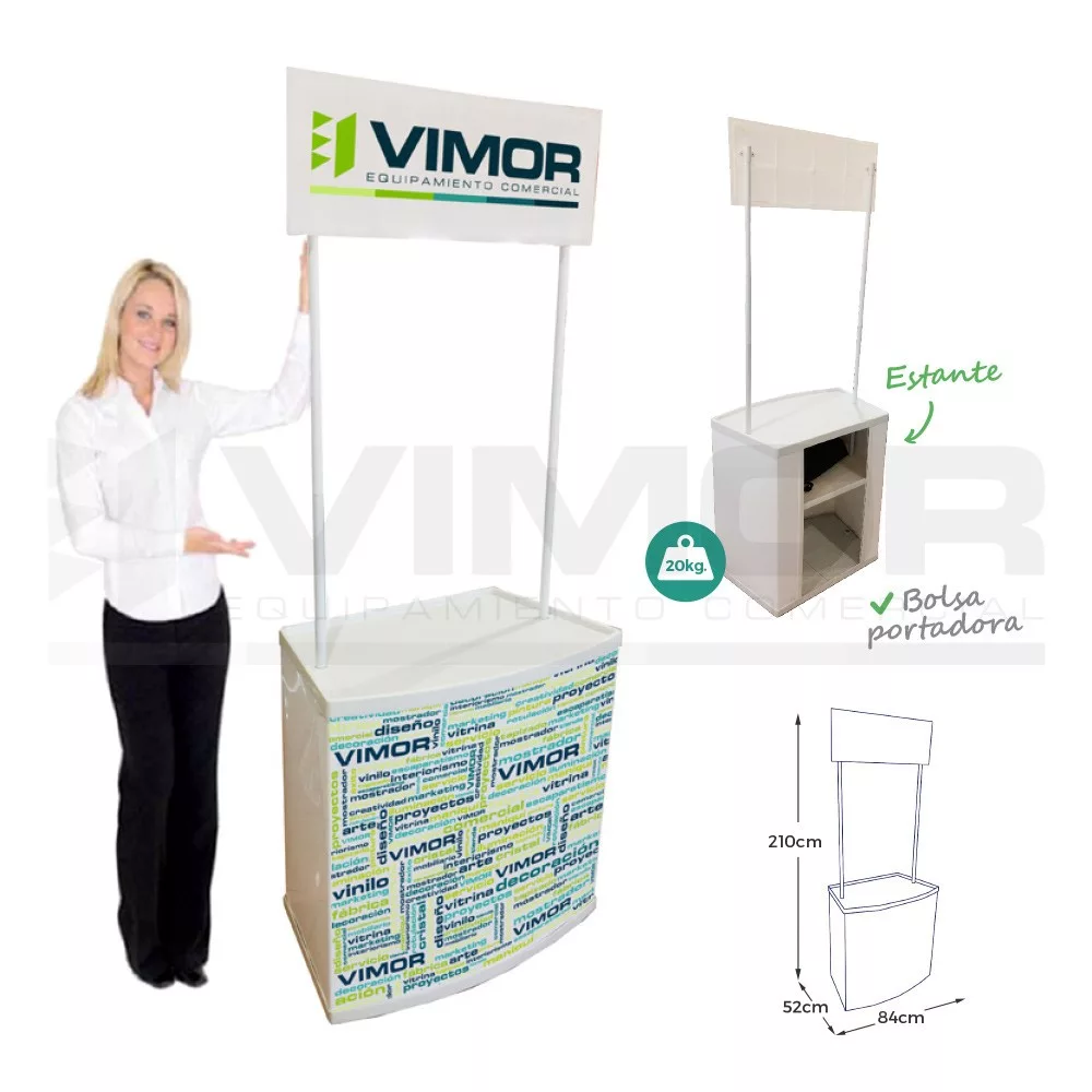 Se puede personalizar con vinilo impreso el frente  cabecera y el frente del mostrador.
