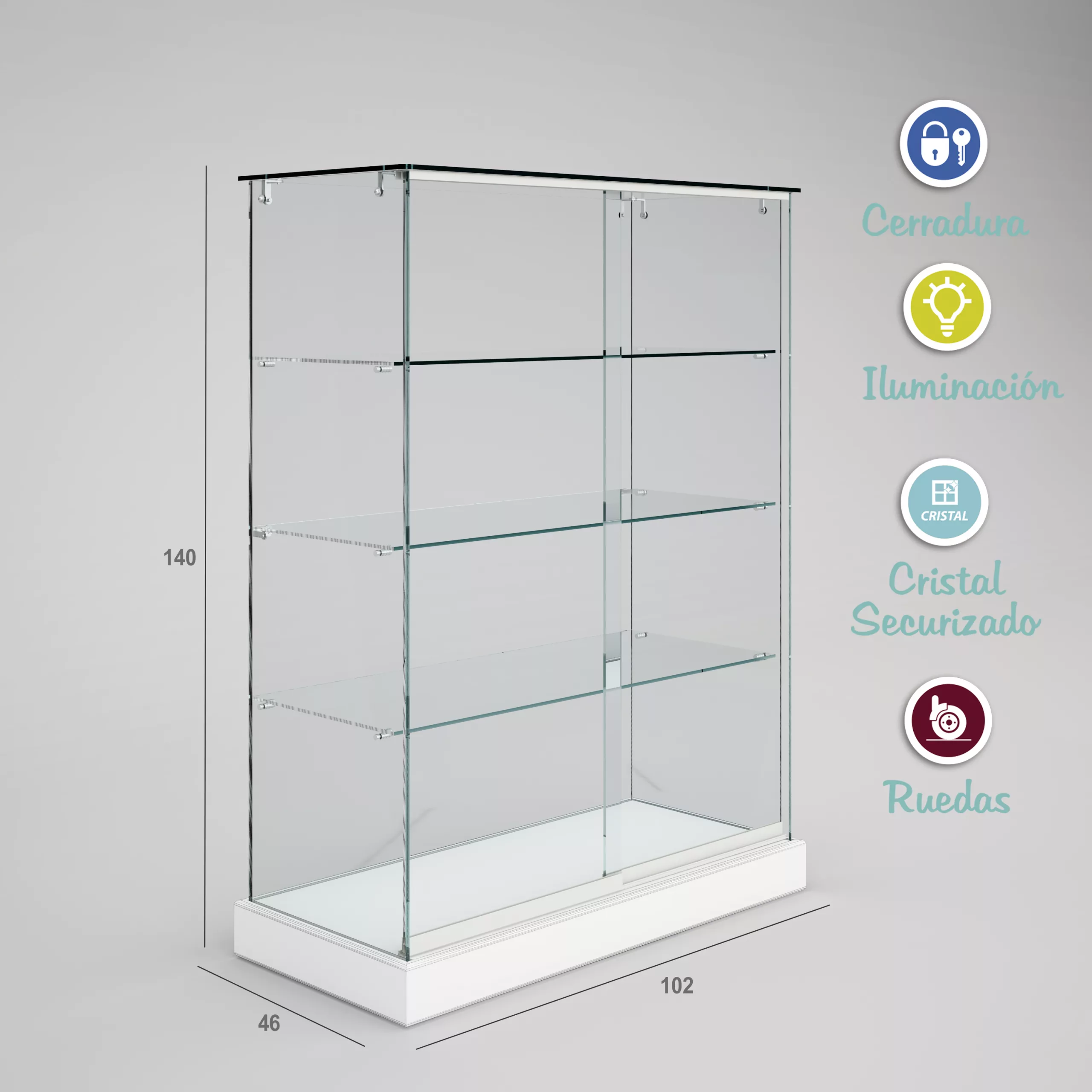 Vitrina cristal 8mm templado, 3 estantes 1020x460x1400
