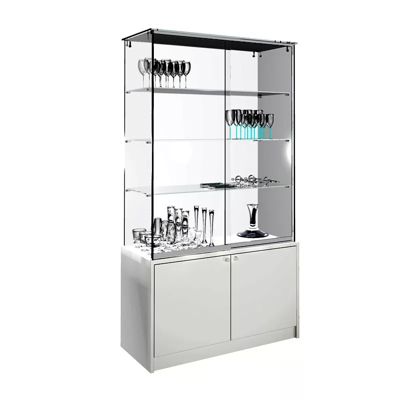 Vitrina cristal templado 3 estantes y buch de 2 puertas, altura 190cm