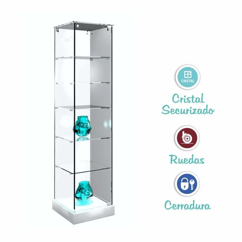 Vitrina cristal 8mm templado, 5 estantes 460x460x1900h mm